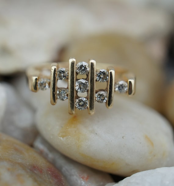 Solid Gold 14k Kin Authentischer Diamant Gelbgold Vintage Ring Etsy De